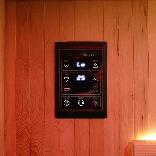 Sauna cabin, infrared heaters, control panel, speakers, glass door, user manual |