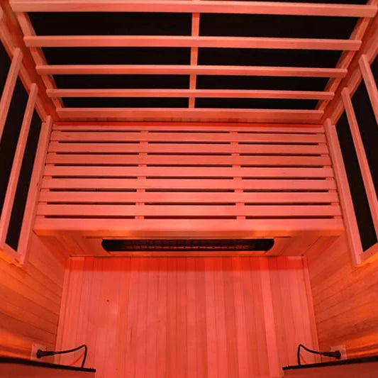 Hemlock wood panels, stainless steel hinges, carbon heaters, glass door, LED lighting |