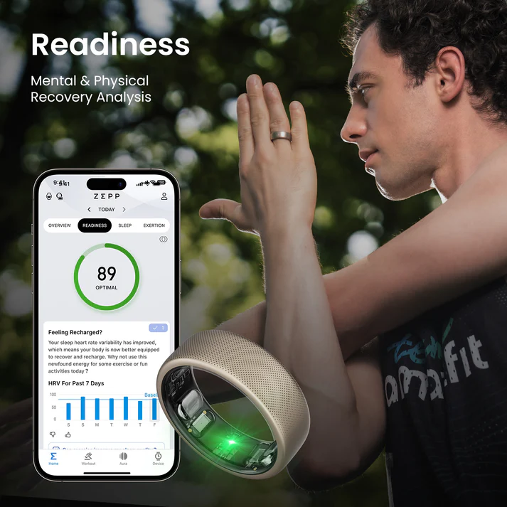 The Amazfit Helio Ring monitors physical indicators of emotional states with its electrodermal activity (EDA) sensor, and combines that with your heart rate variability (HRV) to detect changes in your daily and weekly expression of emotions.
