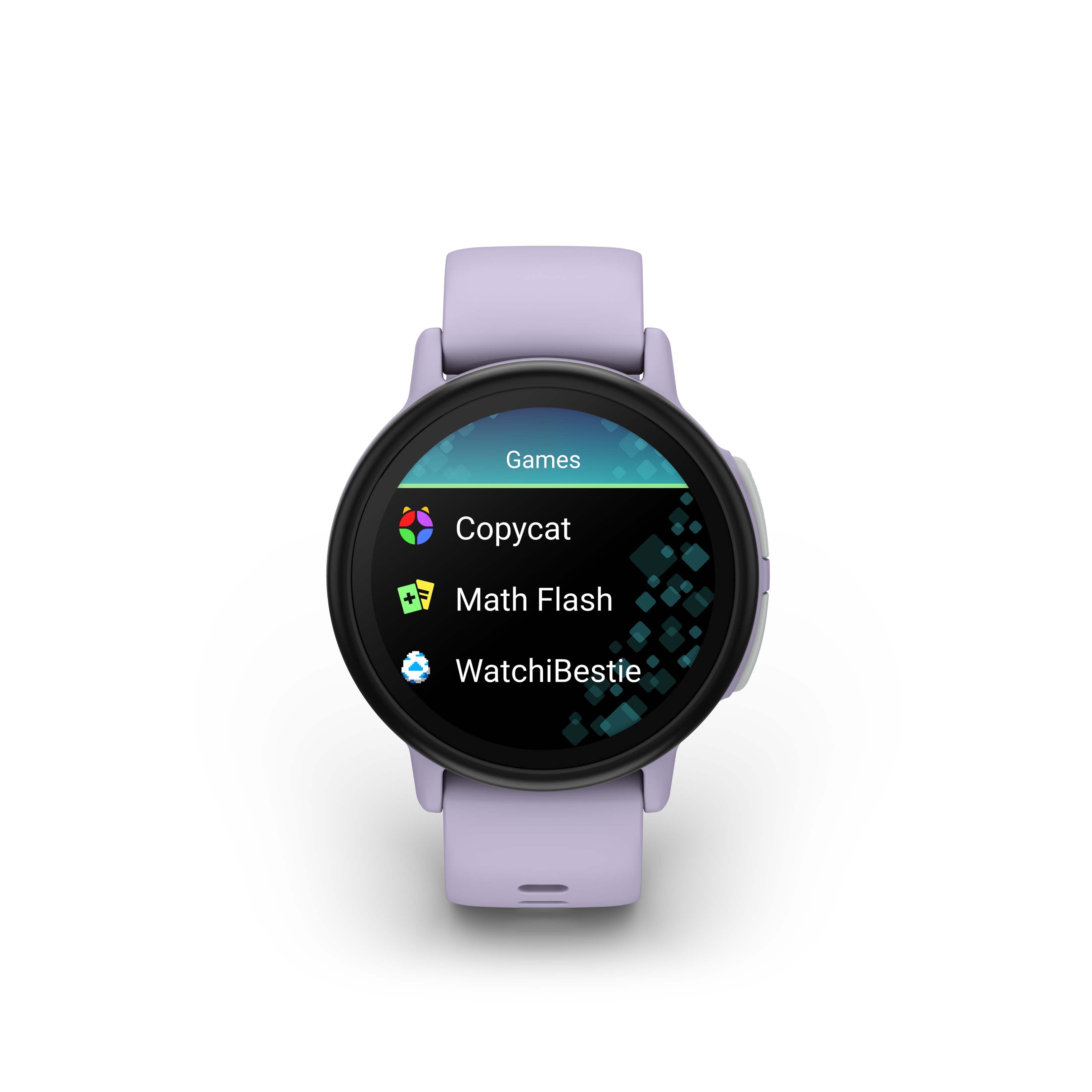 · Provides educational interactive Garmin Jr.™ smartphone app experience for kids to unlock adventures; includes games, fitness tips and more