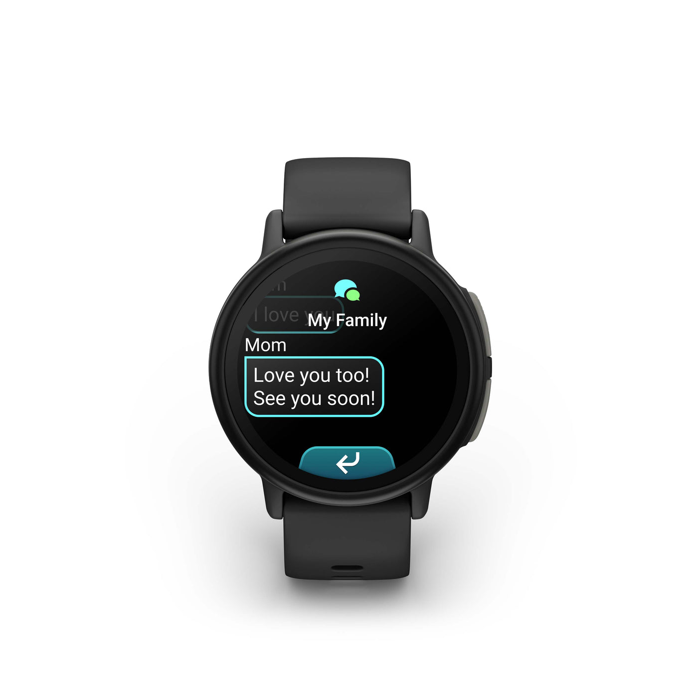· Easily send text messages between the Bounce™ 2 smartwatch and the Garmin Jr.™ smartphone app (an active subscription and LTE connectivity are required)