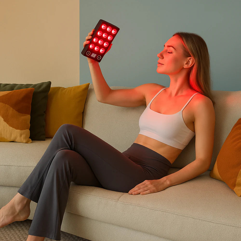 - Mini-sized red light therapy panel with dual 660nm & 850nm LEDs.